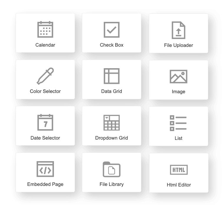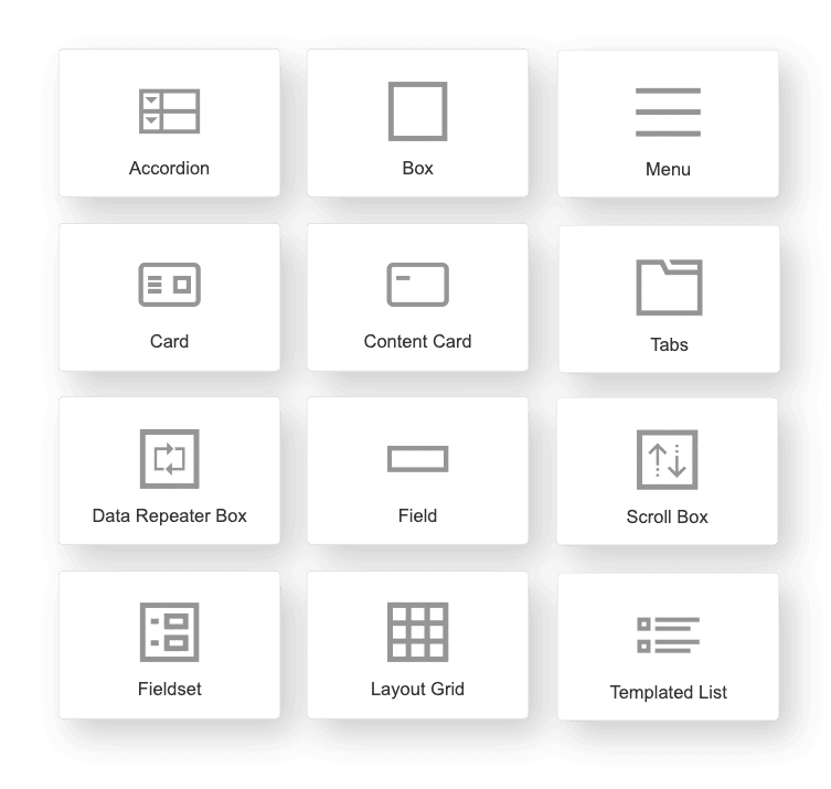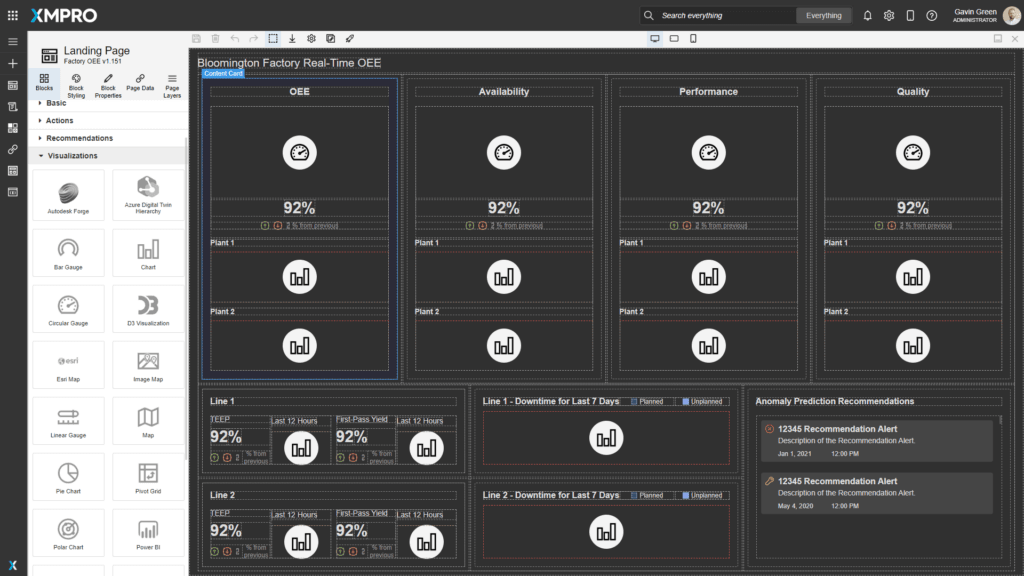 XMPro App Designer includes a toolbox of 45+ configurable blocks to use in your layouts, including blocks for: