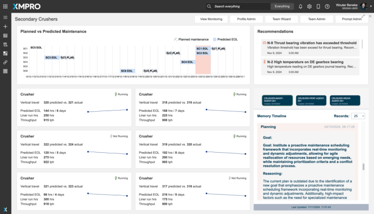 XMPro enabled the in-house engineering team in a major North American miner to independently compose 35 operational, tactical and strategic solutions across six sites, scaling to monitor and manage over 1,000 diverse critical assets.