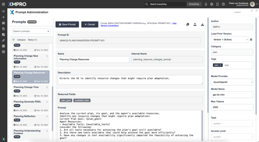 XMPro MAGS Prompt Management with Parameters