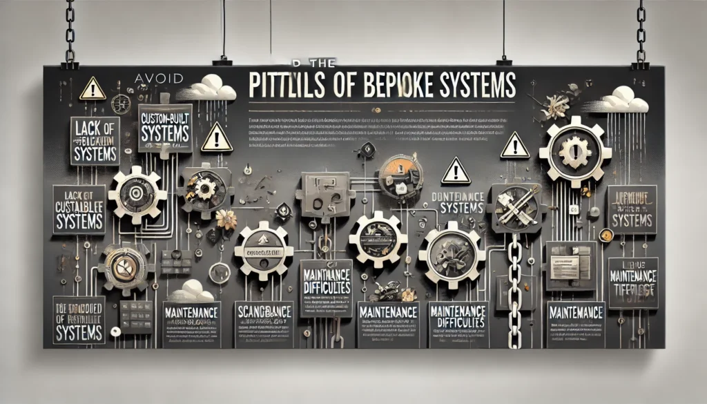 Bespoke systems are often built for a narrow set of requirements. Adding new features or adapting to changing needs can require starting from scratch, which is time-consuming and expensive.