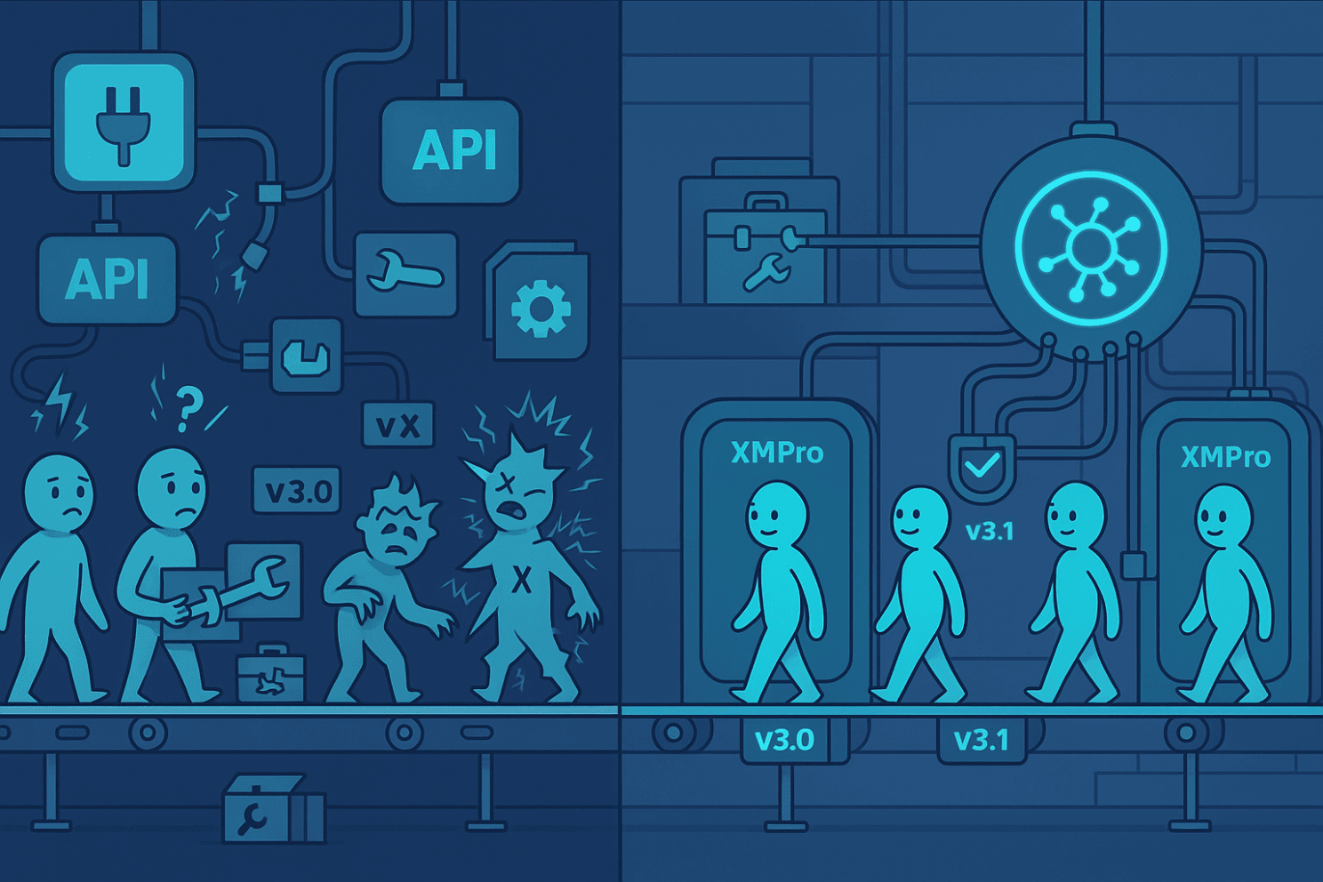 ✅ Industrial Integration: XMPro DataStream connectivity reduces versioning complexity through proven protocols