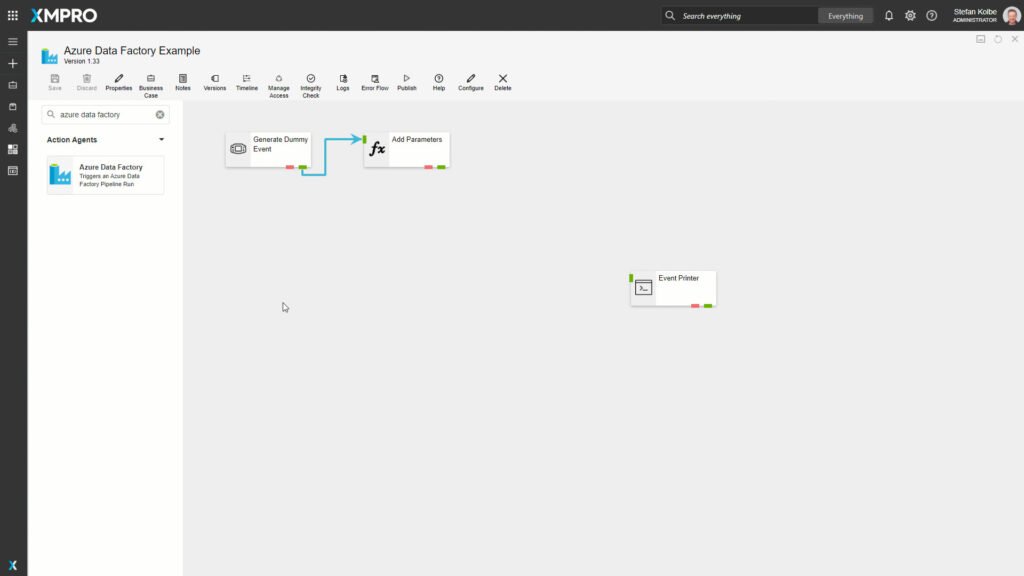 The Azure Data Factory Action Agent allows you to manually trigger an Azure Data Factory Pipeline run for an existing pipeline.