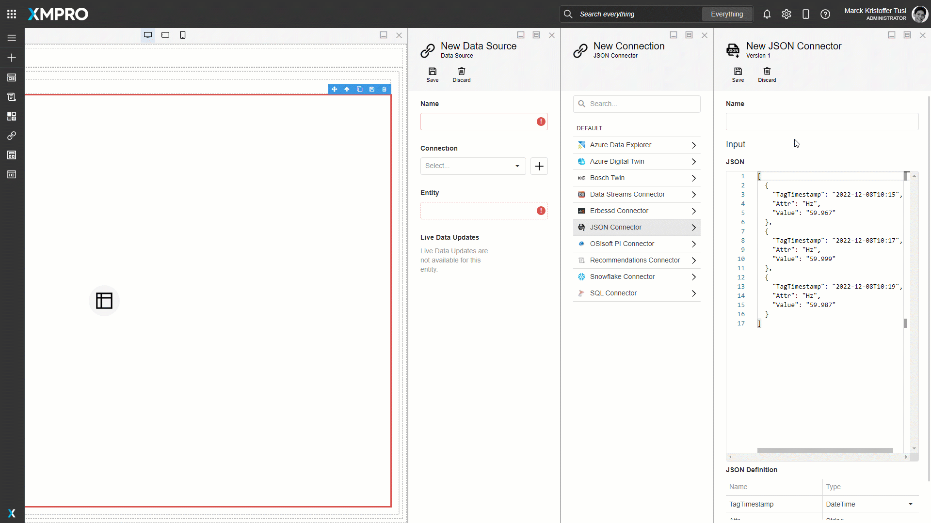 JSON Connector AgentThe JSON Connector uses the JSON text string you provide to simulate data input for an XMPro Application.