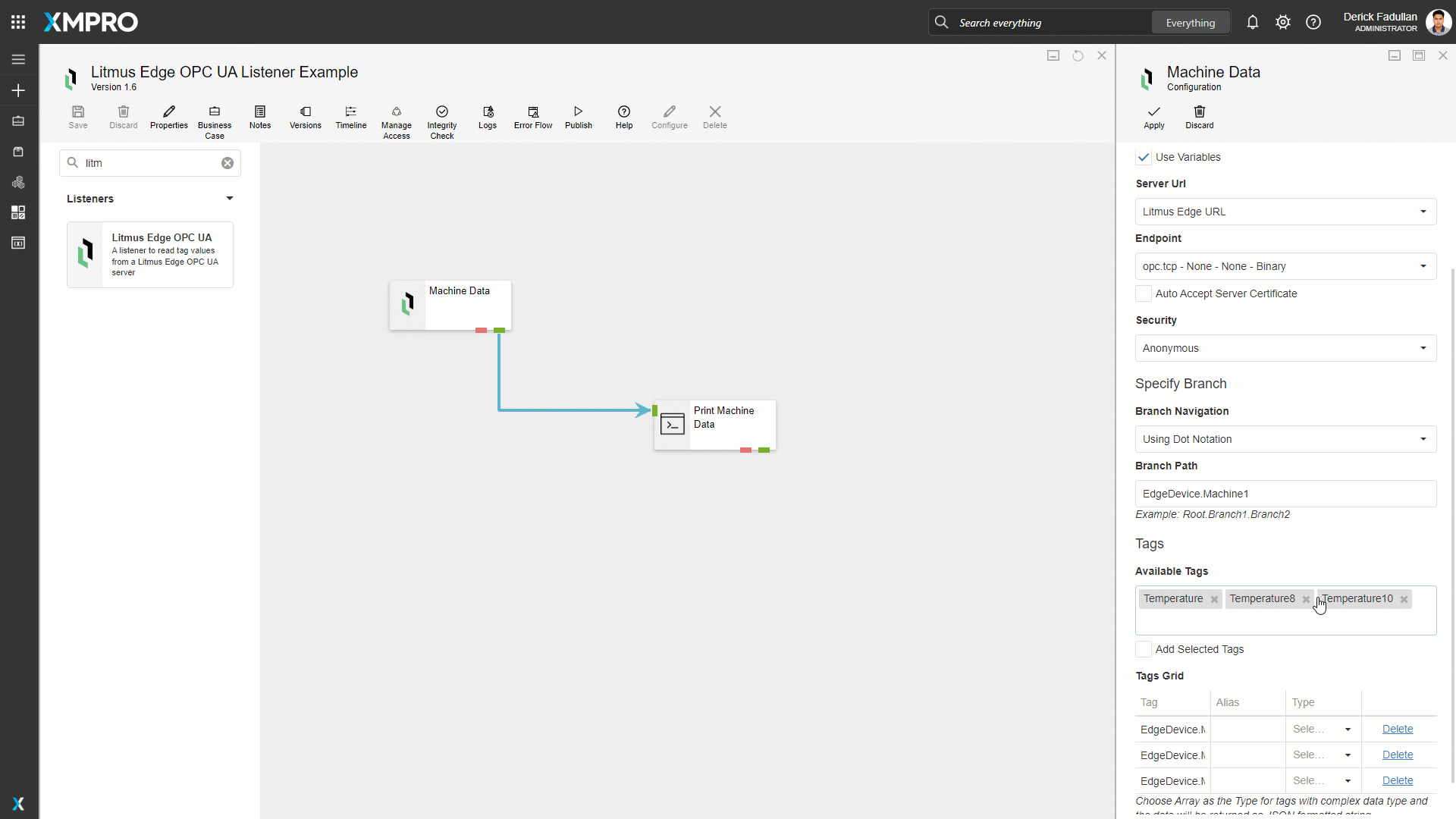 The Listener allows you to retrieve tag values of the selected nodes on the Litmus Edge OPC UA Server.