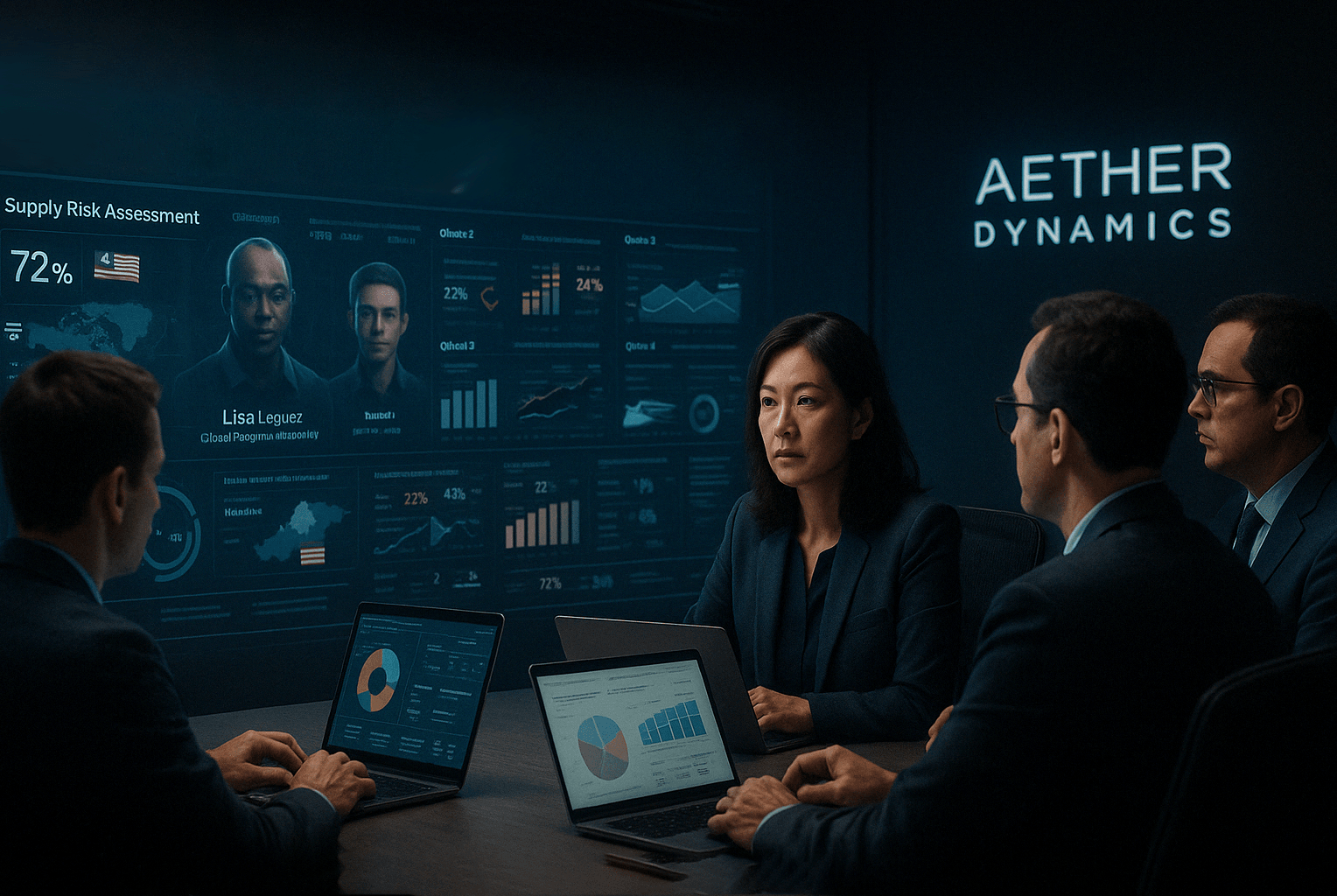 "Three viable alternatives," Lisa explains, "each with full impact analysis. Option one activates our domestic backup supplier at a 12% cost premium but guarantees delivery within schedule parameters. Option two redistributes production scheduling to prioritize components not requiring titanium, creating a three-day delay for the affected product lines. Option three utilizes an alternative alloy with 89% similar properties, requiring engineering validation."