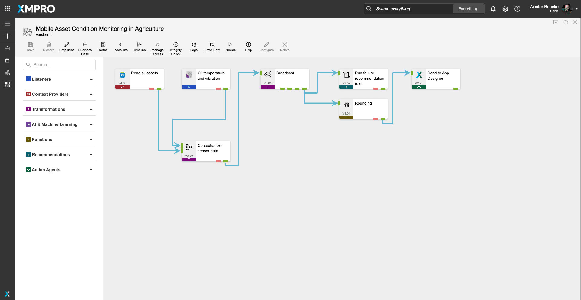 Experience the transformative power of XMPro’s AO Platform – Featuring comprehensive AI capabilities, XMPro AO Platform helps to significantly increase product yield, drastically reduce downtime, and ultimately eliminate unexpected business events.Why XMPro AO Platform for Condition Monitoring in Agriculture?