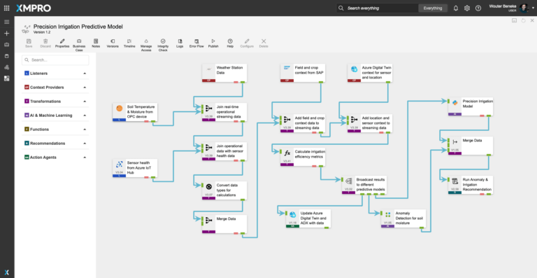 XMPro's platform integrates soil moisture data with weather forecasts and crop models to optimize irrigation schedules, ensuring crops receive the right amount of water at the right time.