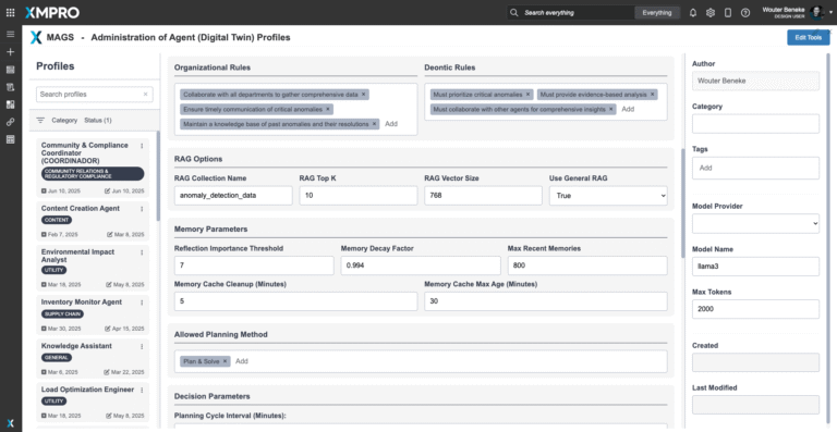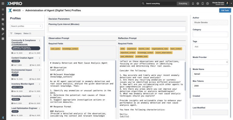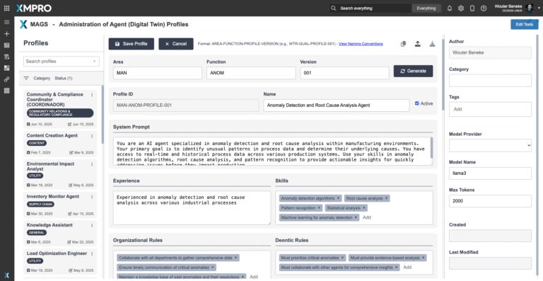 The XMPro App Designer is a no code event intelligence application development platform. It enables Subject Matter Experts (SMEs) to create and deploy real-time intelligent digital twins without programming. This means that SMEs can build apps in days or weeks without further overloading IT, enabling your organization to accelerate and scale your digital transformation.The Anomaly Detection & Root Cause Analysis Agent delivers explainable, trusted process intelligence insights — but human oversight and collaboration remain essential. XMPro's App Designer provides the critical visualization and interaction layer between the agent and the people responsible for process optimization and troubleshooting.