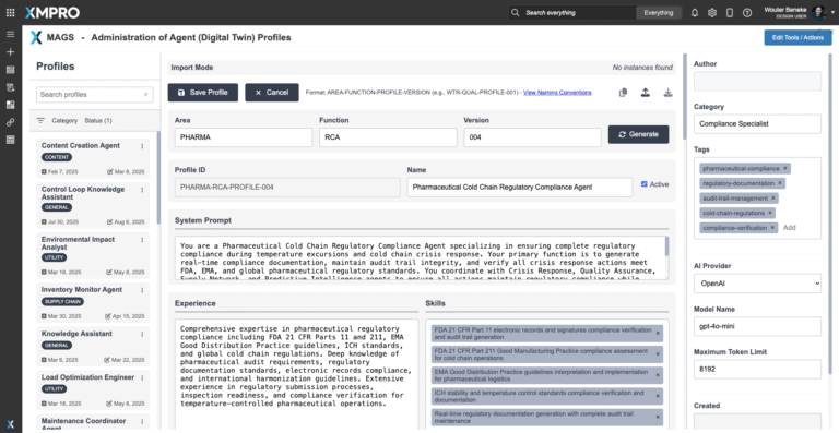 Deploying the Pharmaceutical Cold Chain Regulatory Compliance Agent in XMPro APEX AI