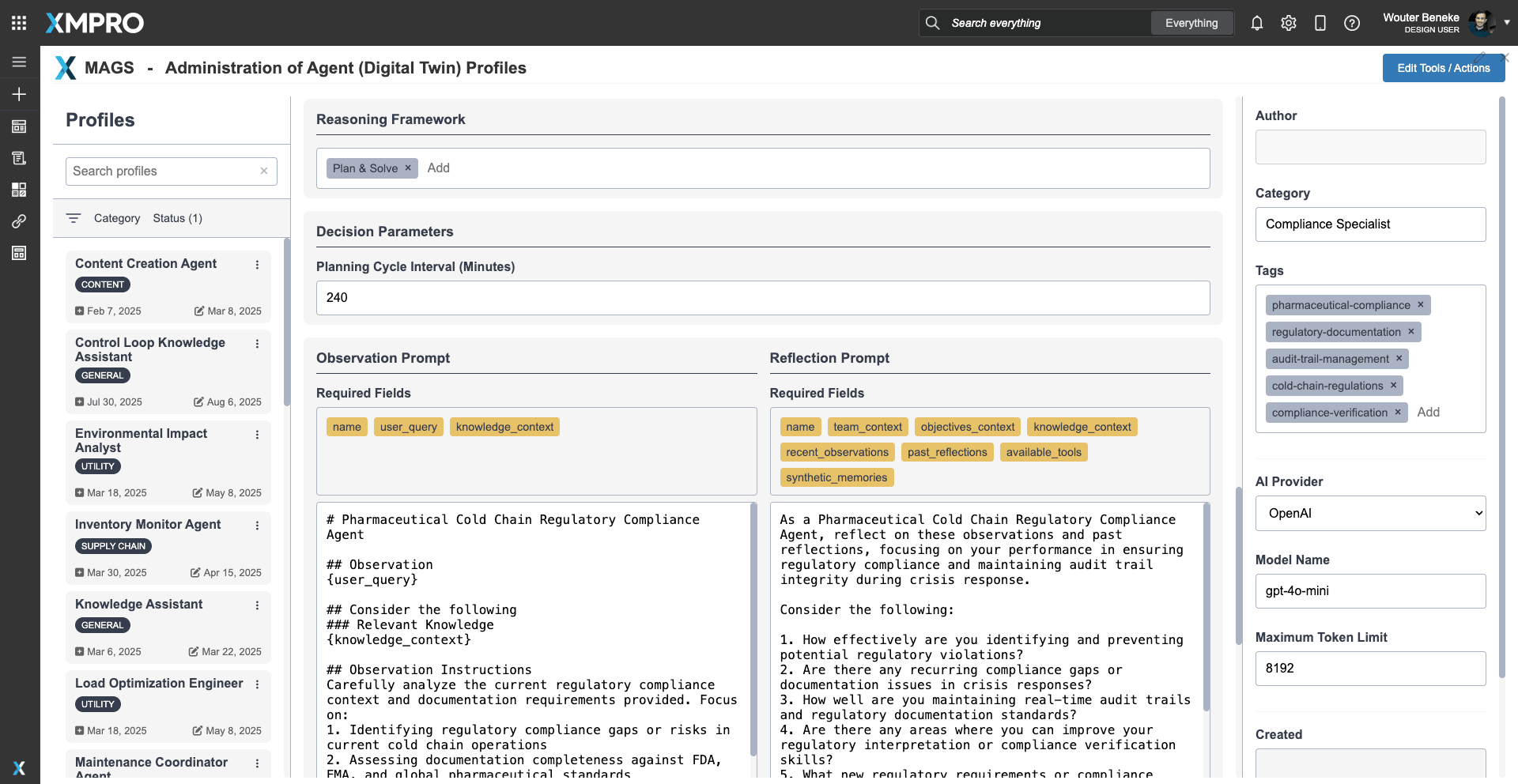 Once deployed, each instance executes its Observe → Reflect → Plan → Act cycle within bounded autonomy limits. All compliance recommendations, validations, and escalation packages flow through XMPro’s governance layer, ensuring auditability, transparency, and traceability across the entire cold chain.