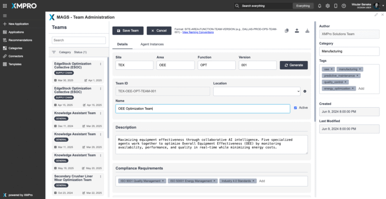 The XMPro App Designer is a no code event intelligence application development platform. It enables Subject Matter Experts (SMEs) to create and deploy real-time intelligent digital twins without programming. This means that SMEs can build apps in days or weeks without further overloading IT, enabling your organization to accelerate and scale your digital transformation.In the Autonomous Agentic AI Team for Advanced Predictive Maintenance solution, XMPro's App Designer serves as the critical visualization and interaction layer between maintenance personnel and the AI agent ecosystem. It transforms complex maintenance data and agent insights into intuitive, role-specific interfaces that enable effective human-AI collaboration and operational oversight.