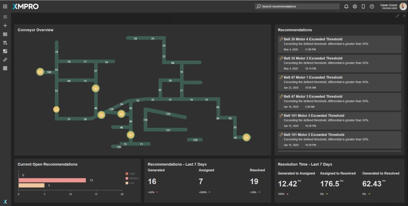 Real-Time Monitoring and Control: XMPro’s solution provides a centralized platform for real-time monitoring and control of conveyor systems, offering insights into operational parameters such as speed, load, and vibration.