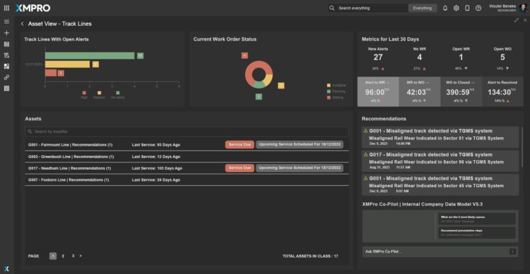 XMPro AO Platform provides real-time monitoring of track conditions, with an alert system that notifies maintenance teams of any detected issues requiring immediate attention.