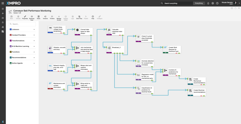 XMPro’s AO Platform offers a suite of unique solutions specifically tailored for optimizing the performance and maintenance of conveyor belt systems in the automotive industry. Here’s how XMPro AO Platform effectively addresses this challenge: