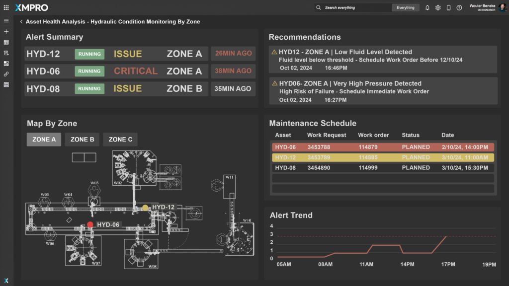 XMPro shifts from reactive to predictive maintenance, allowing tasks to be scheduled at optimal times without disrupting production, ultimately extending the lifespan of hydraulic systems..