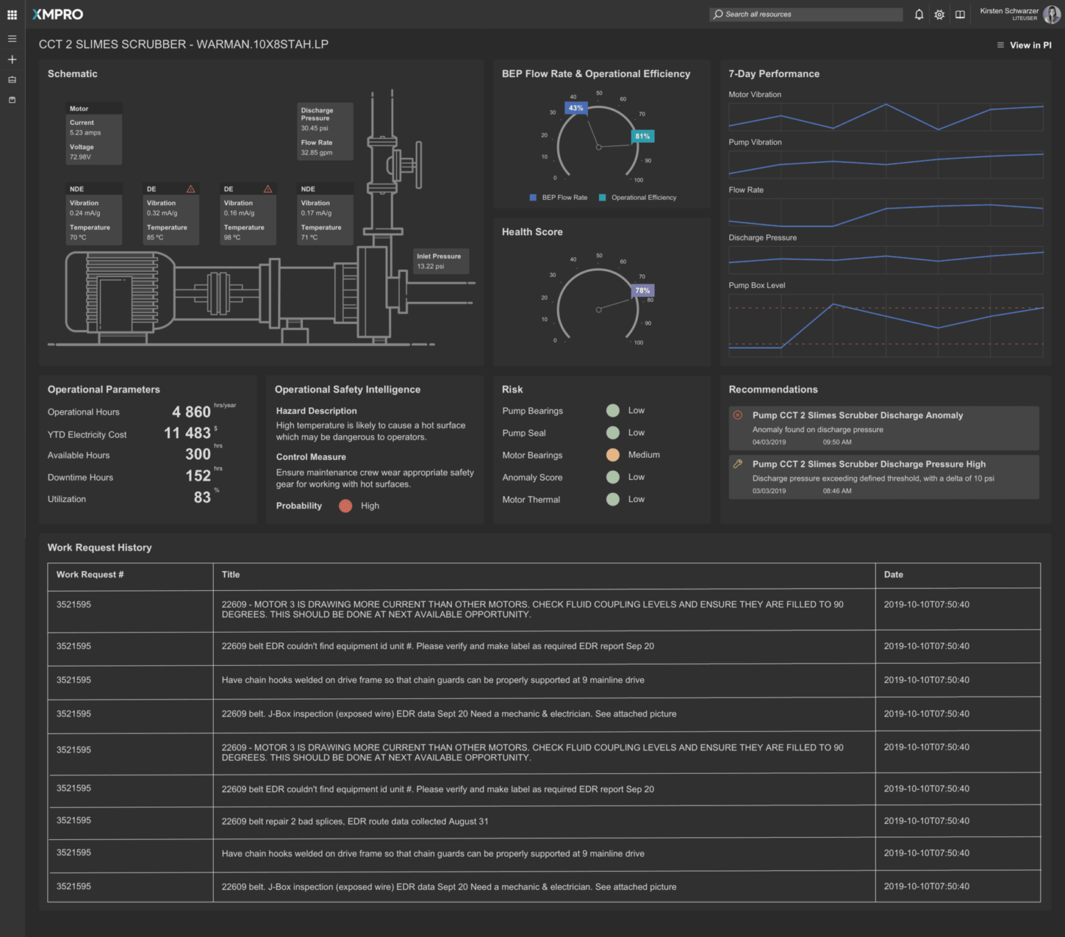 This detailed drilldown enables maintenance teams to act proactively, addressing potential problems before they escalate, ensuring sustained pump operation, and maintaining safety standards within the plant. By leveraging XMPro's monitoring solution, clients can achieve greater efficiency, reliability, and cost savings, ultimately enhancing their operational performance and competitiveness.