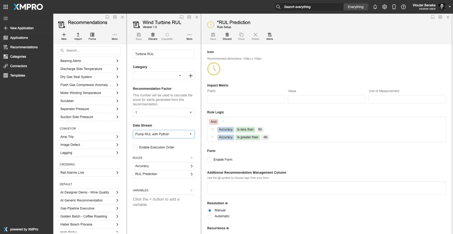XMPro’s solution leverages IoT sensors, advanced data analytics, and machine learning to predict and prevent turbine failures. By employing a combination of granular rule logic and AI, XMPro provides detailed insights into the remaining useful life of components and delivers actionable predictive maintenance recommendations. This proactive approach helps optimize turbine performance, reduce downtime, and extend asset lifespan, ensuring efficient and reliable wind energy production.