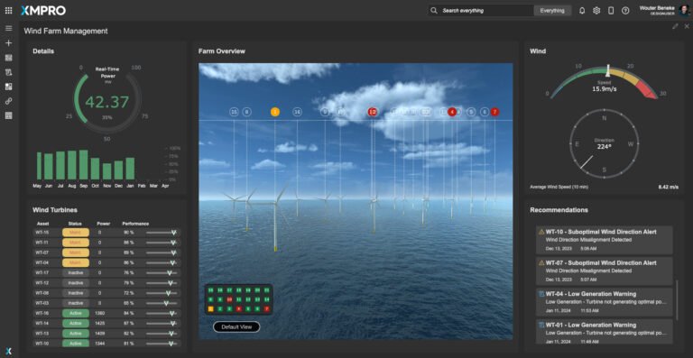 XMPro iDTS provides a centralized platform for monitoring all windfarms, offering real-time data on turbine performance, weather conditions, and energy output.
