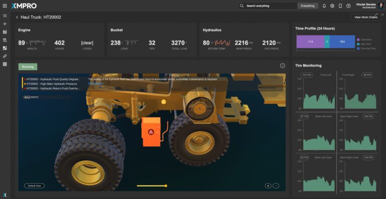 Integrated Real-Time Asset Monitoring: XMPro AO Platform unifies sensor data from across mobile assets, providing a real-time overview of mechanical health, from engine performance to structural integrity, critical for preemptive maintenance actions.