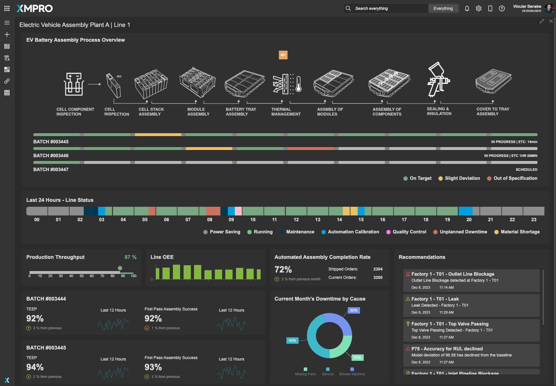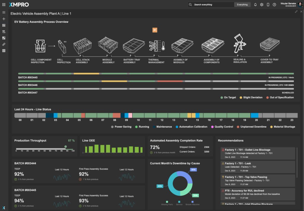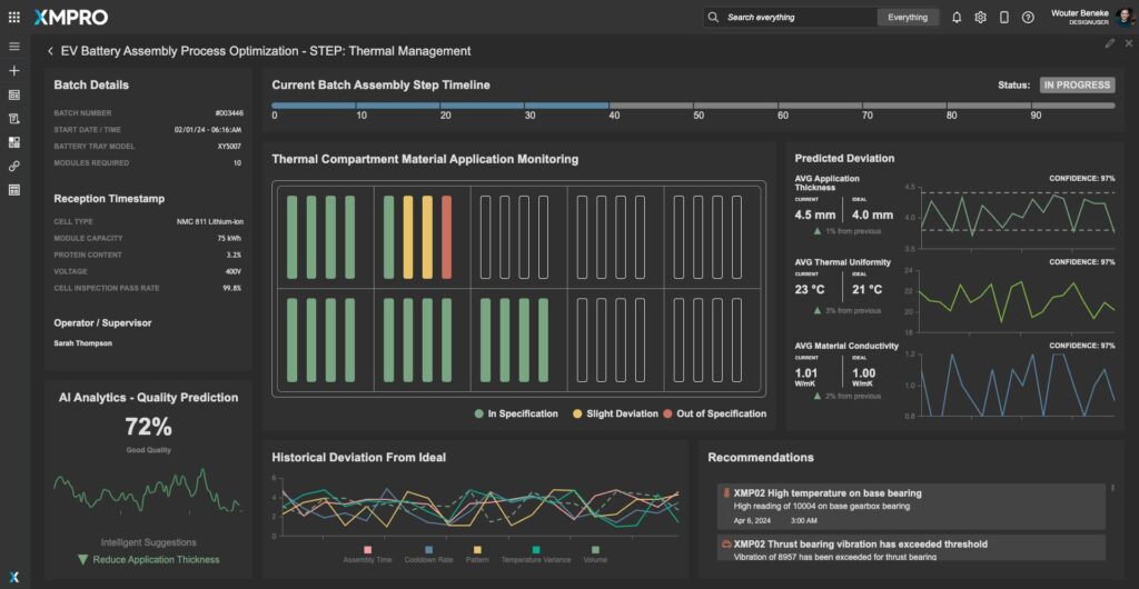 XMPro features customizable dashboards that offer a comprehensive view of the battery assembly process. These dashboards display essential metrics, alert operators to any deviations, and provide actionable recommendations, enabling swift and informed decision-making to maintain process integrity.