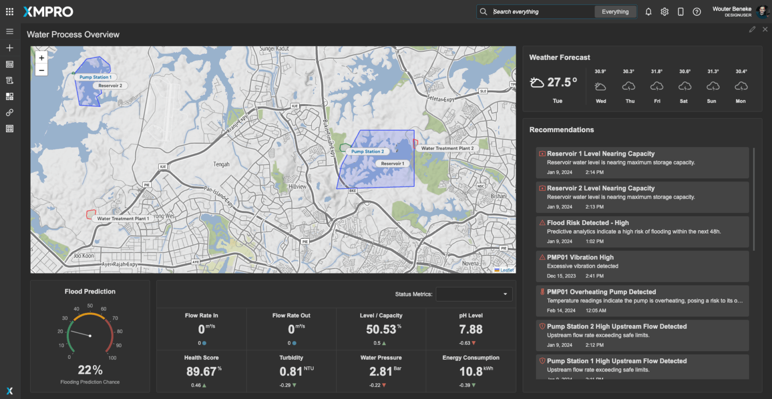 XMPro AO Platform includes configurable dashboards that display key data on flood risks and asset conditions. These dashboards can be tailored to the specific needs of water utility operators, providing actionable insights for flood management.