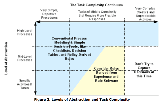 When processes are viewed at a high level (as often happens in BPA) then all tasks seem to be based on some predetermined decision logic. But as you get to specific tasks and activities lower in process it appears that many require user decision-making that is based on contextual information and past experience.
