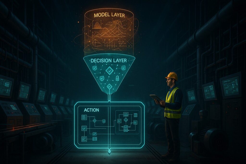 Action-level determinism means all operational actions (dispatching work orders, adjusting setpoints, triggering alerts, optimizing schedules) must be reproducible, traceable, and auditable. This is where safety engineering and compliance requirements apply.