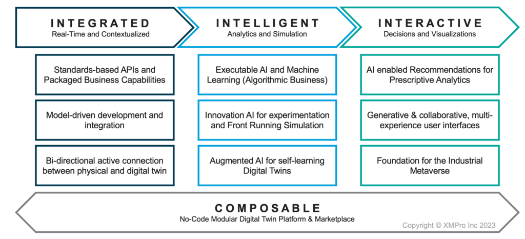 Embracing this vision of Intelligent Digital Twins, XMPro has developed a comprehensive framework that transforms this concept into a tangible and actionable implementation plan. In our next blog post we will introduce our I3C Digital Twin Strategy Framework, designed to guide organizations through the process of adopting and integrating Intelligent Digital Twins seamlessly and effectively. (Link to blog post 2)