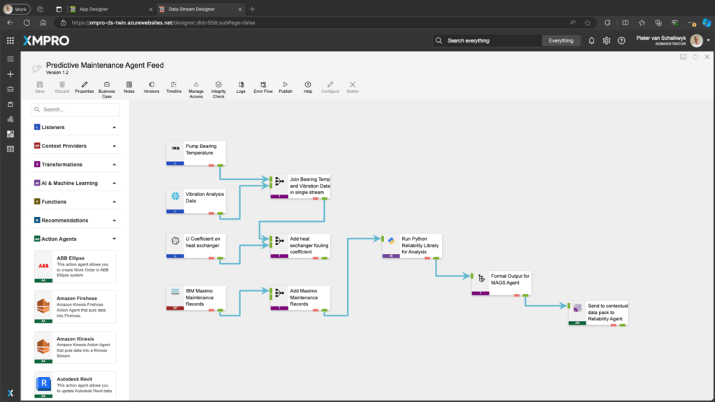 XMPro’s Intelligent Business Operations Suite (iBOS) offers streamlined implementation of predictive analytics, designed to turn data into actionable insights quickly. The platform’s flexibility allows users to deploy predictive models seamlessly into their existing processes, providing real-time insights for proactive decision-making. This means fewer disruptions, better resource allocation, and improved overall performance.