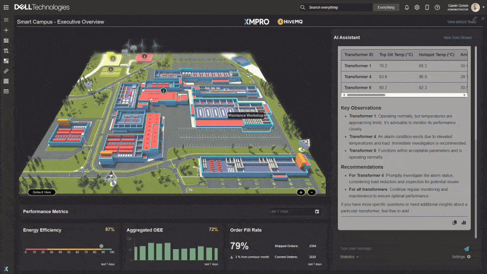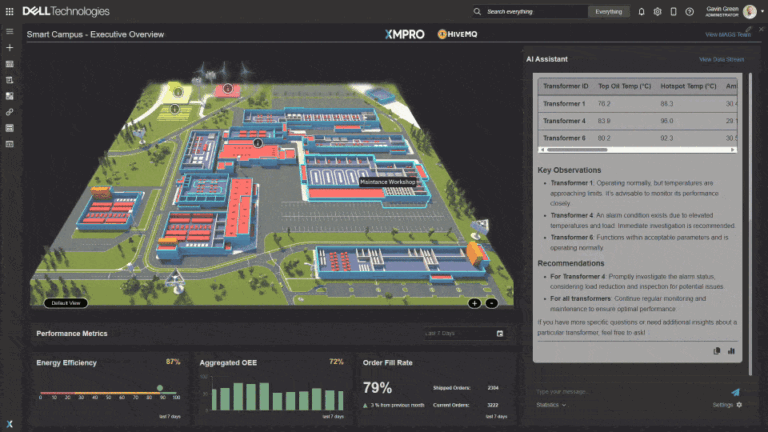 The demonstration shows how Dell NativeEdge simplifies the deployment and scaling of XMPro's AI-powered digital twin applications through secure orchestration with HiveMQ's messaging platform. This integration creates a comprehensive solution connecting live factory data with digital models to enable real-time, AI-driven insights and actions.