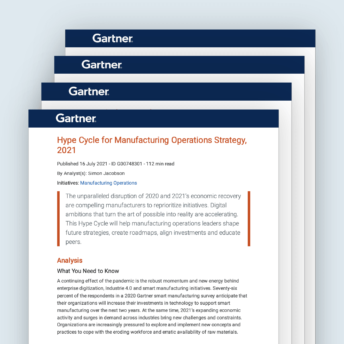 1 Gartner, “Hype Cycle for Manufacturing Operations Strategy, 2021”, Simon Jacobson, 16 July 2021.