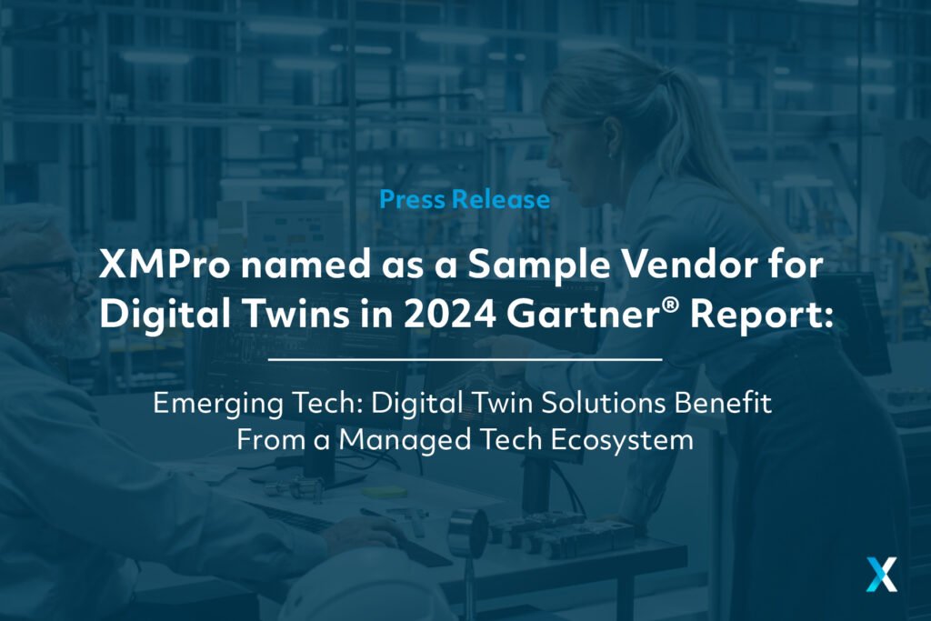 XMPro, a leading provider of Intelligent Digital Twin Solutions for asset-intensive industries, has been named as a Sample Vendor for Digital Twins in the 2024 Gartner Emerging Tech: Digital Twin Solutions Benefit From a Managed Tech Ecosystem.