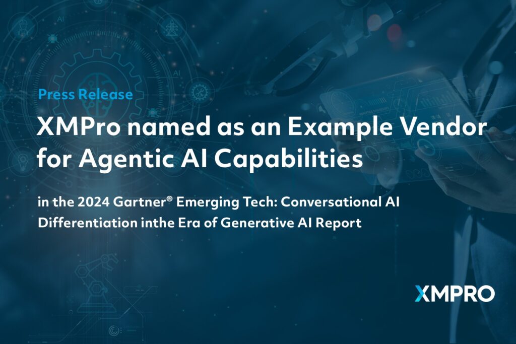 XMPro, a leading provider of intelligent operations solutions for asset-intensive industries, is pleased to announce that it has been recognized as an Example Vendor for Agentic AI Capabilities in the 2024 Gartner Emerging Tech: Conversational AI Differentiation in the Era of Generative AI report.