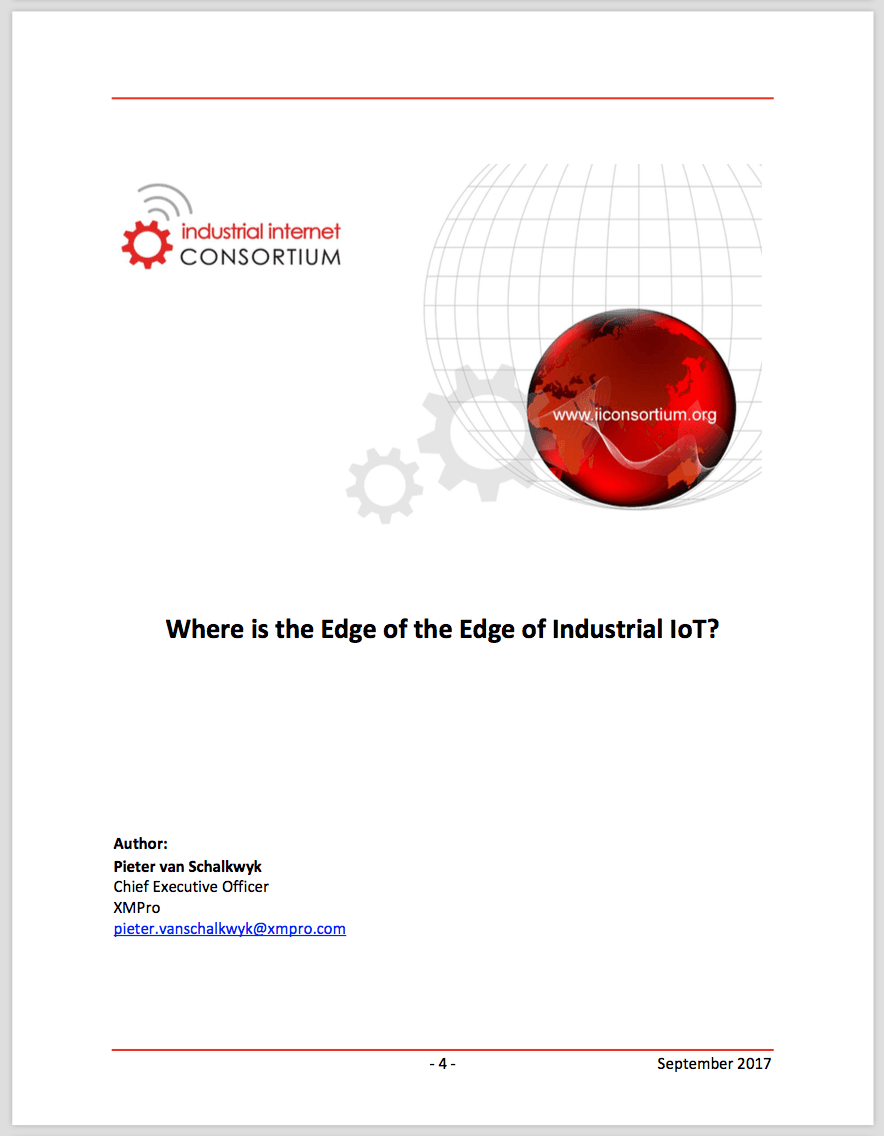 The Industrial Internet Consortium published the 5th edition of its Journal of Innovation today with a focus on Edge Computing. We’re excited to announce that the article “Where is the Edge of the Edge of Industrial IoT?” by XMPro’s CEO, Pieter van Schalkwyk, was selected for this edition.